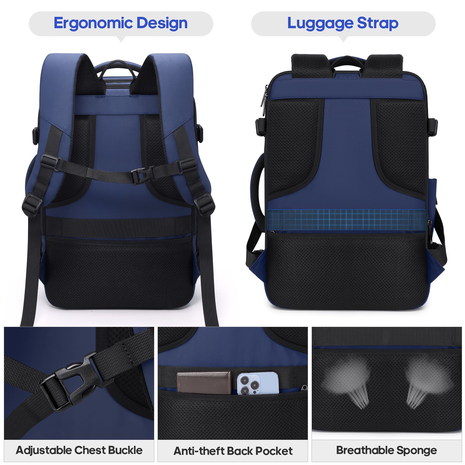 UKEIN Travel Backpack for Adults with USB Charging Port 36L Expandable Carry On Backpack Water-resistant Business Travel Backpack for Men