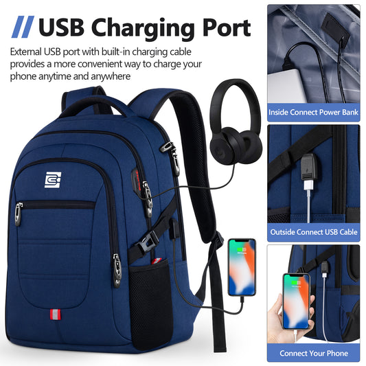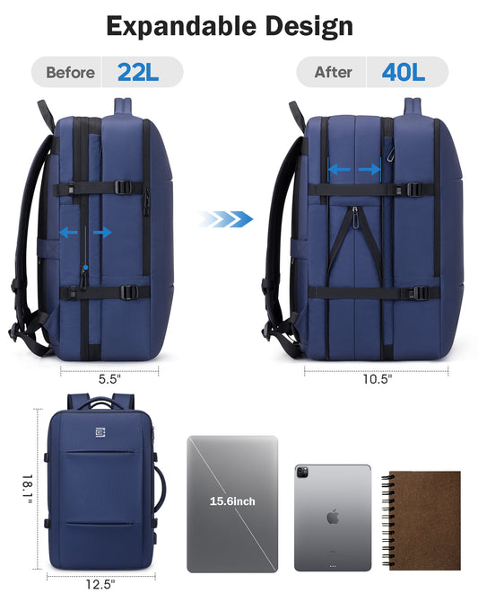 UKEIN 40L Travel Laptop Backpack Expandable Water-resistant 17 Inch Laptop Backpack with USB Charging Port Work Business College Computer Backpack Navy Blue Laptop Backpack for Men & Women