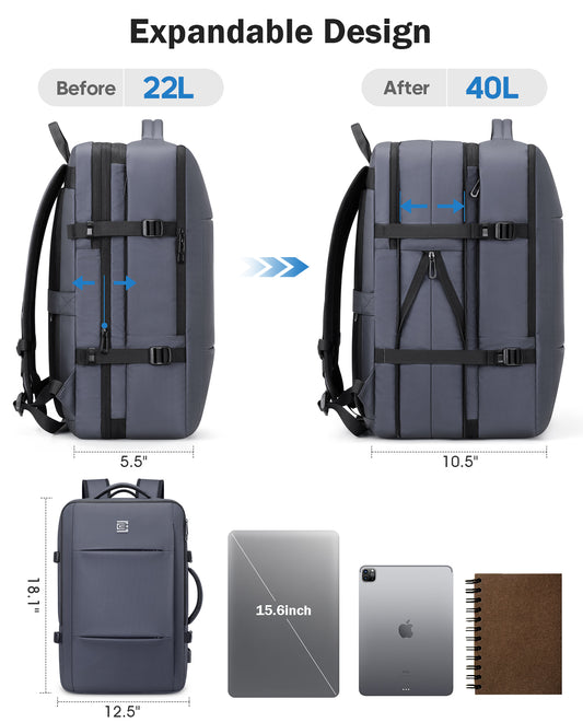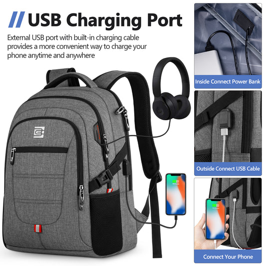 UKEIN 40L Travel Laptop Backpack Expandable Water-resistant 17 Inch Laptop Backpack with USB Charging Port Work Business College Computer Backpack Gray Laptop Backpack for Men & Women