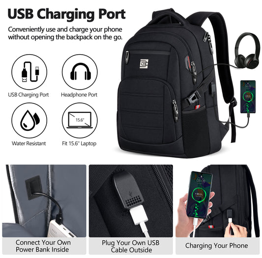 UKEIN Travel Laptop Backpack with USB Charging Port Water Resistant Laptop Backpack Work Business College Computer Backpack Black Laptop Backpack for Men & Women